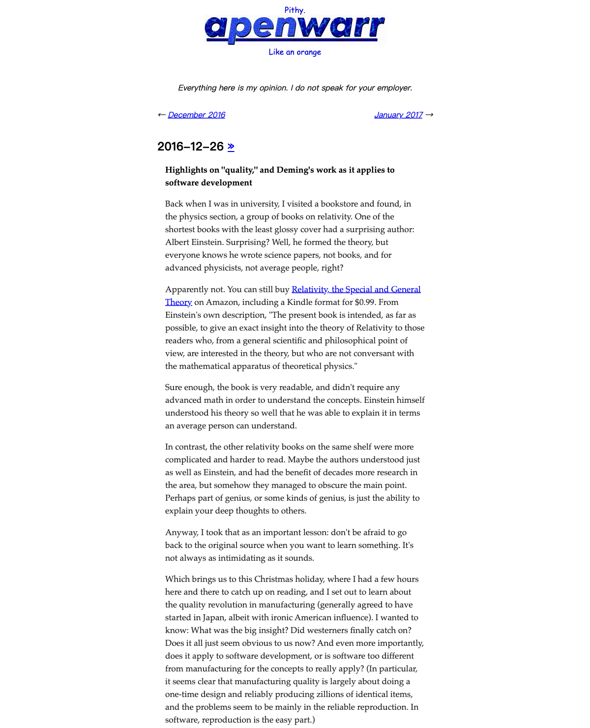 质量管理的两个重要观点是:输出应具有连续的分布,而不仅仅是在规格内,强调整体质量的重要性;需要区分特殊变异原因和常见变异原因,以便有效解决质量问题。此外,作者提到从原始来源学习的重要性,并反思了戴明对传统管理方式的批评,倡导以质量为核心的新管理理念。