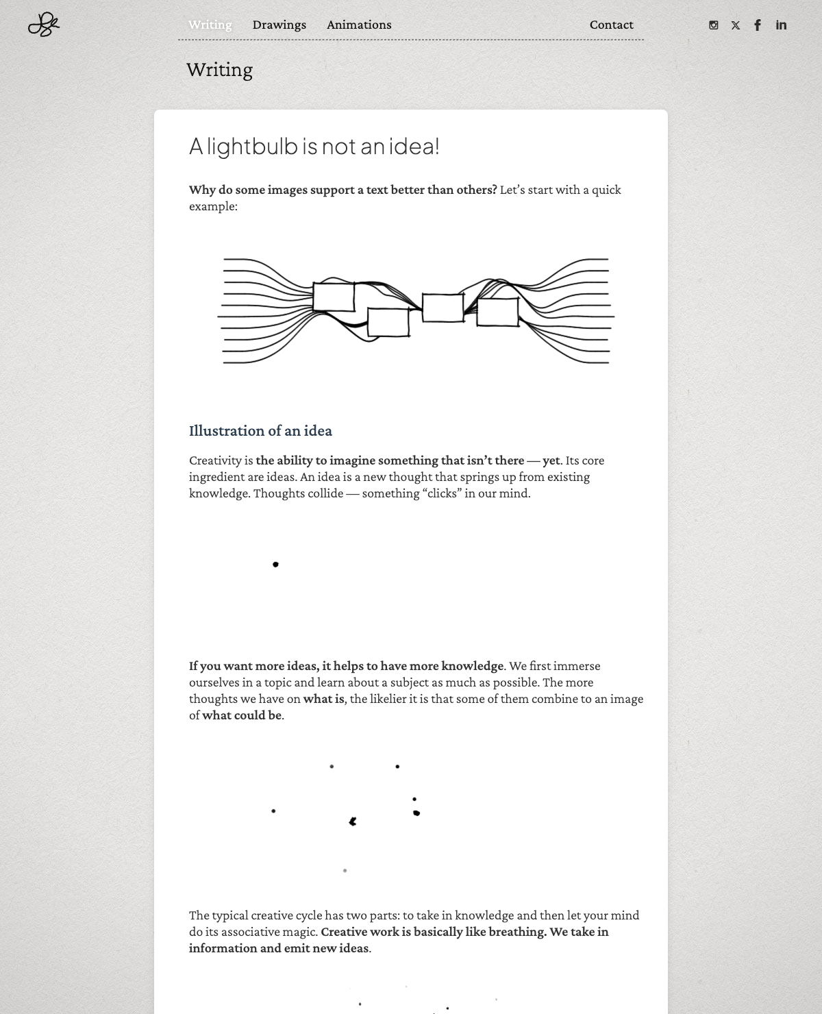 创造力源于对现有知识的吸收与联想,图像通过提供具体的视觉表现,帮助我们更好地理解和记忆文本内容。绘画比文字更具具体性,能够传达原始思想,而传统符号如灯泡图像则缺乏深度和营养价值。有效的插图需具备原创性,揭示真正的想法。