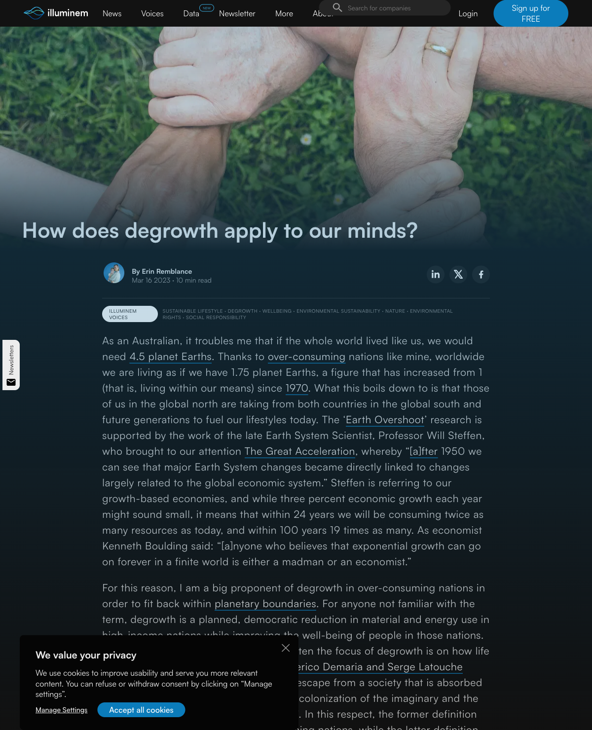 去增长理论强调工作分享和自我组织,反对过度消费,认为现代生活的价值观植根于增长的心理结构。人们需要重新评估生活方式,追求“足够”而非“更多”,并通过简化生活实现更高的幸福感。反对增长的运动包括极简主义、四天工作制和重视休息的理念,旨在创造自给自足的文化,以应对生态危机。