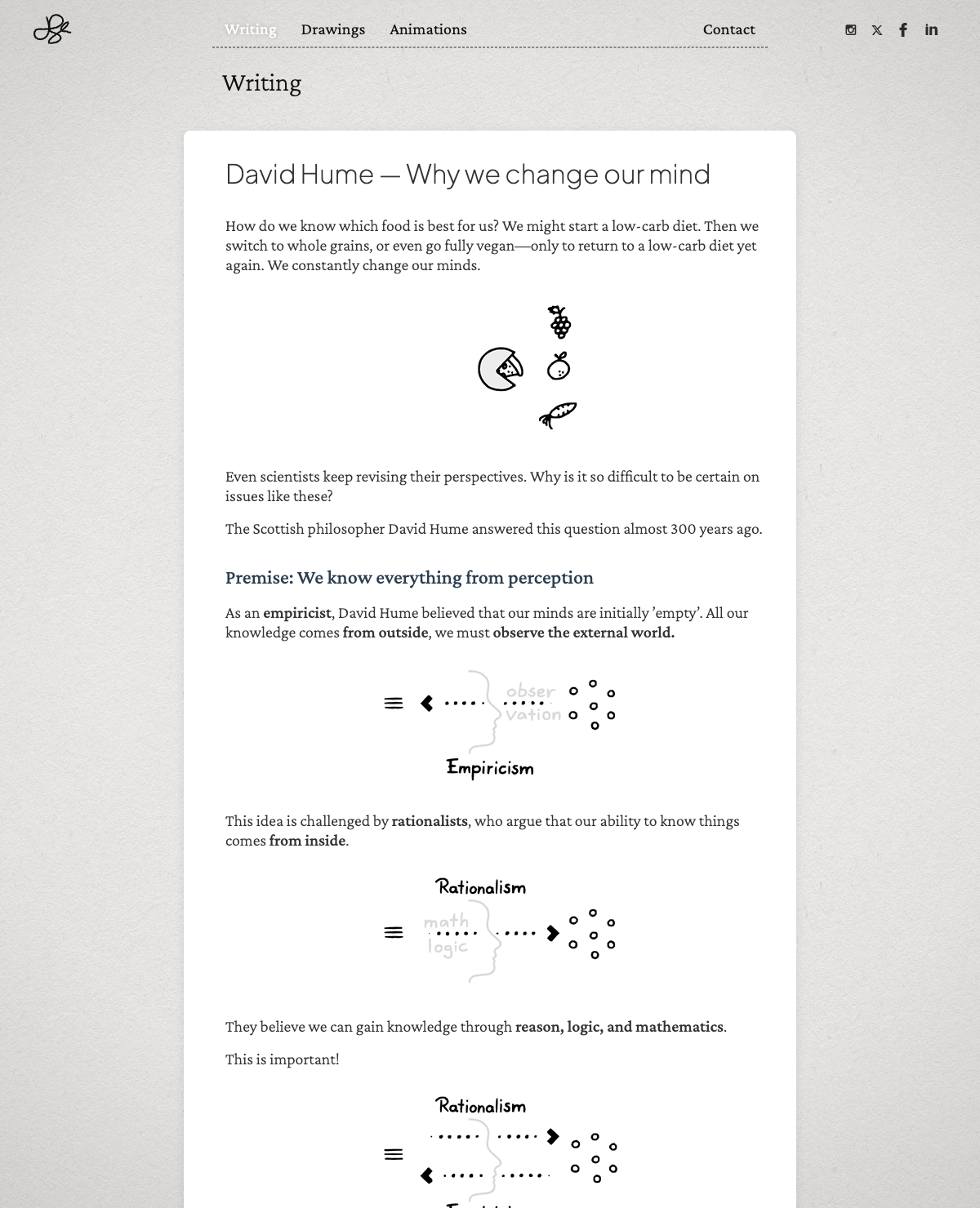 大卫·休谟认为人类的观点变化源于经验主义,强调知识来自外部感知而非内心理性。他探讨了因果关系的定义及其合理性,指出我们对因果关系的信任是基于习惯而非逻辑推理。这种归纳推理使我们在科学理论上不断修正观点,解释了为何我们在适当营养等问题上会改变想法。