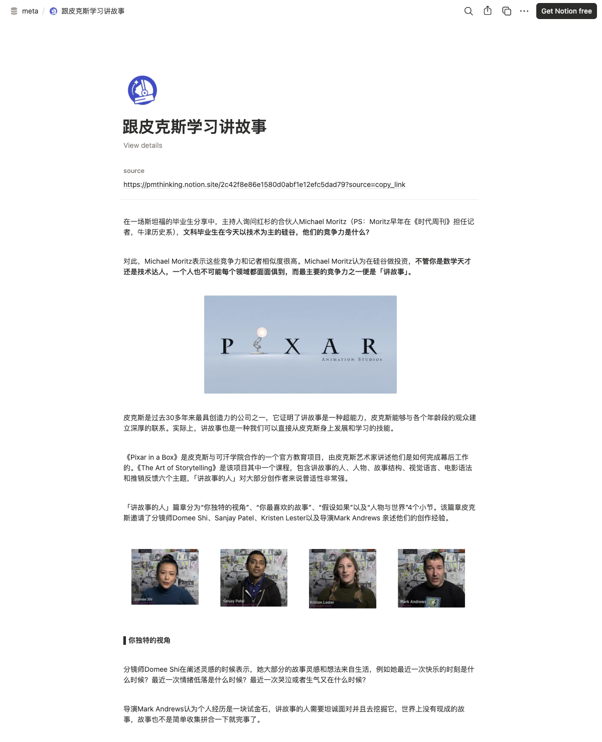 在硅谷,讲故事被视为重要竞争力,皮克斯的成功证明了这一点。通过《Pixar in a Box》项目,皮克斯艺术家分享了讲故事的技巧,包括独特视角、个人经历、假设思维和人物与世界的关系。故事的核心在于个人经历的挖掘和情感的共鸣,讲故事的能力不仅适用于动画创作,也能提升个人表达能力和用户体验设计。