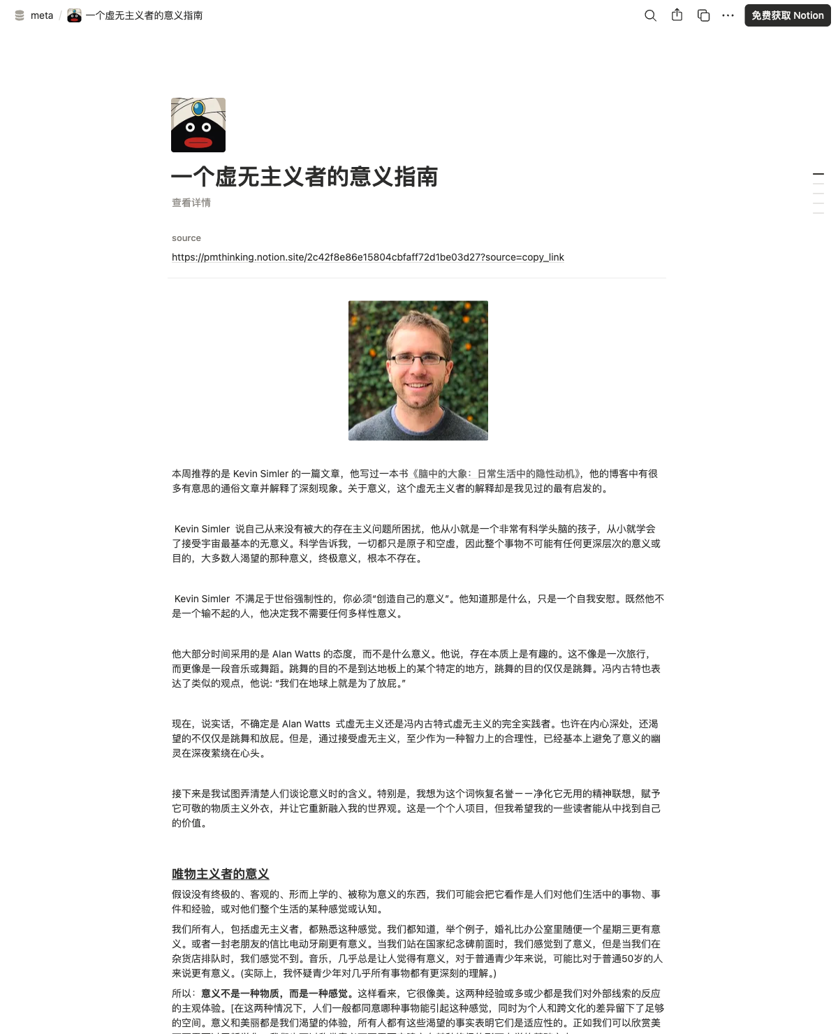 Kevin Simler探讨了虚无主义与意义的关系,认为意义并非终极存在,而是一种主观体验,受上下文影响。他强调,意义源于事物之间的联系,追求意义有助于我们理解生活的价值。科学揭示了人类在宇宙中的渺小,但也展示了我们的复杂性和潜力,使我们能够探索和理解世界。