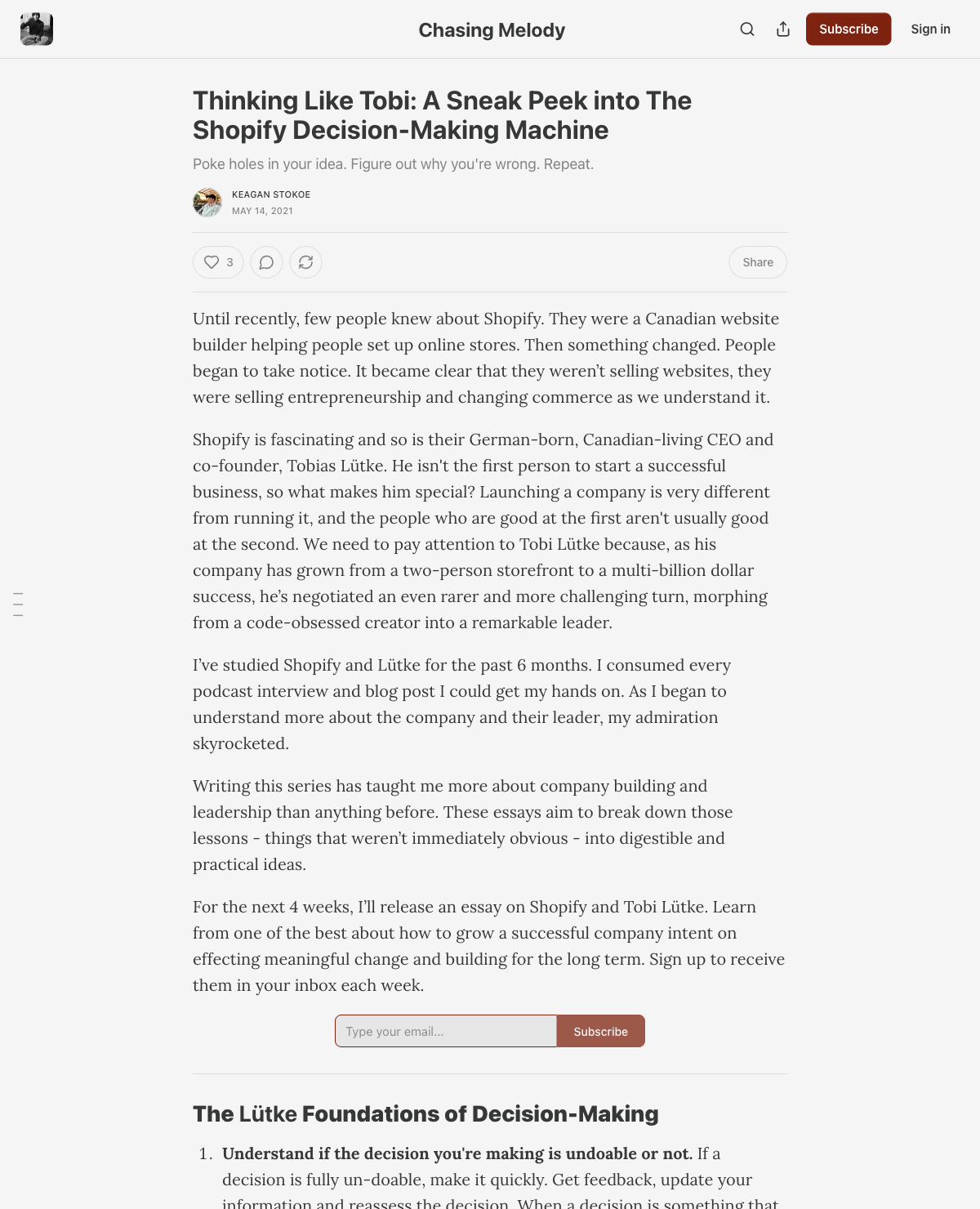 · Shopify の CEO Tobi Lütke の意思決定メカニズム