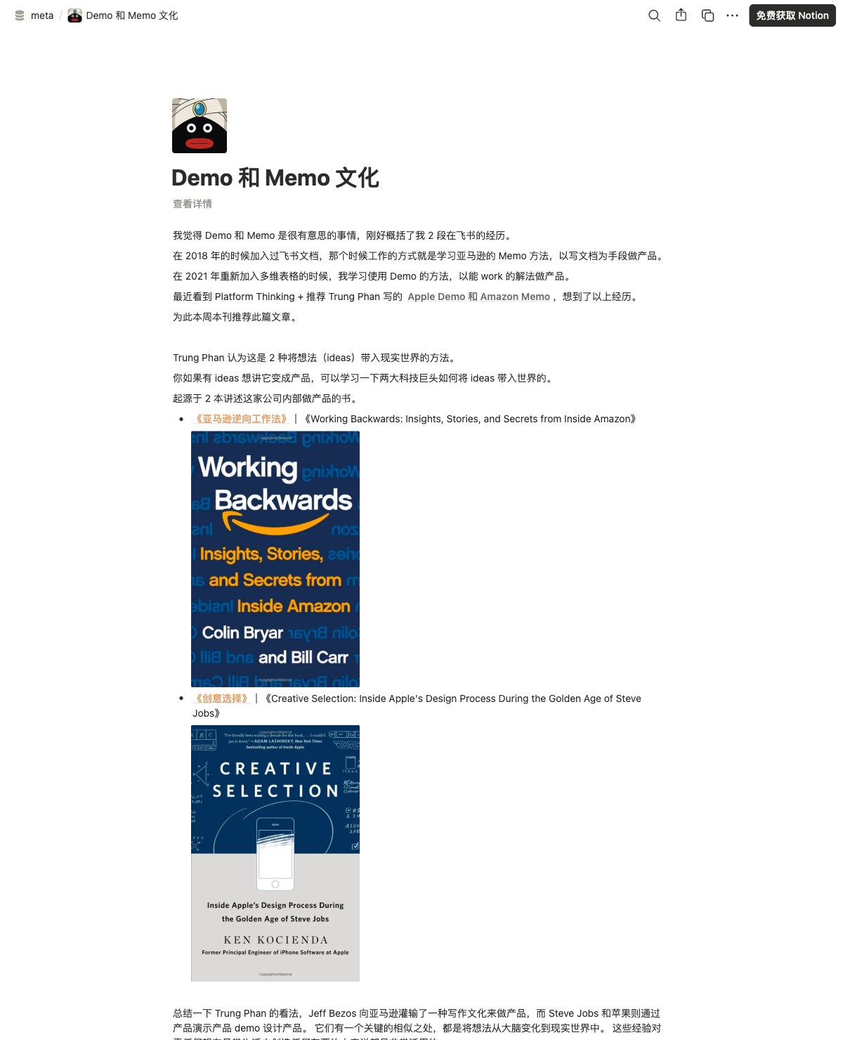 Demo和Memo是将想法转化为现实的两种方法。亚马逊通过书面备忘录促进决策,而苹果则通过产品演示来实现设计。两者都强调将想法具体化的重要性,促进团队的共识和创造性决策。Jeff Bezos和Steve Jobs分别代表了这两种文化,强调了在产品开发中的叙述和演示的价值。